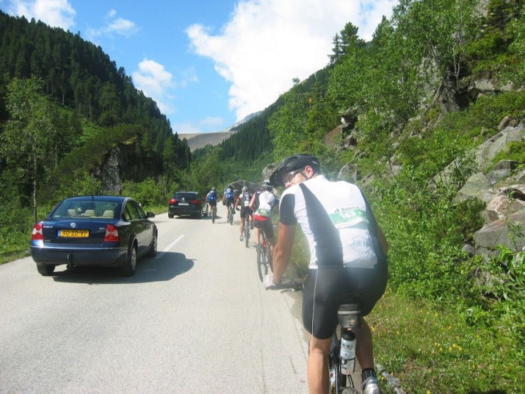Die erste Auffahrt bestand bis zum Schlegeisspeicher hauptsächlich aus Teer und war somit nicht so schlimm. Dieser Teil der Auffahrt war schnell geschafft. Wir fuhren lange beim Mixed Team 235 mit.