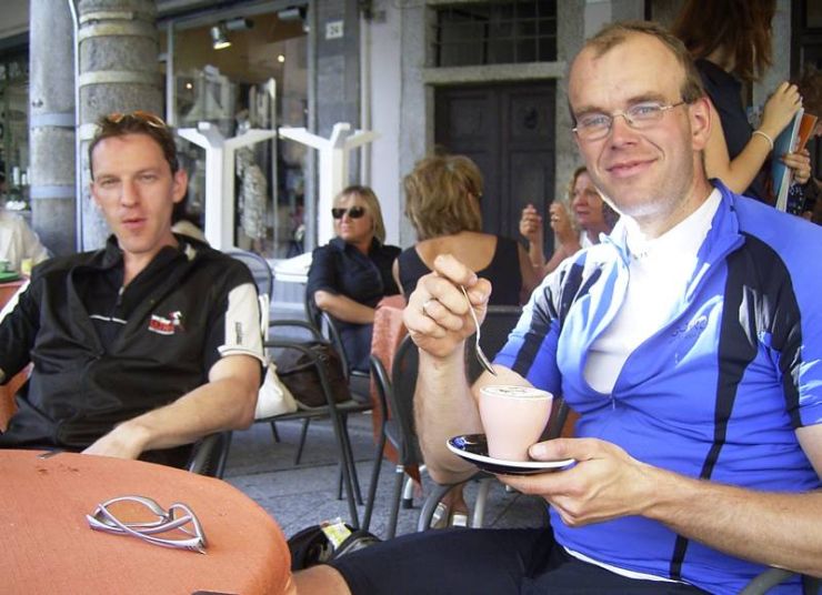 Der Plan war, dass wir in Domodosolla übernachten und am nächsten Tag mit Bike, Fähre und Auto nach Varese fahren, wo wir beim Bruder von Thomas übernachten wollten um am Sonntag zurück nach Deutschland zu fahren. Es war allerdings sehr schwierig in Domodosolla eine Übernachtung zu finden, deshalb sind wir noch am selben Abend nach der eigentlichen Etappe weitere 50km gefahren mit einem Schnitt von 35km/h. Anschließend mit der Fähre über den Lago Maggiore. Dort trafen wir Bernd und Giggi. Nach einem Eis einer Pizza und noch einem Eis sind wir mit 2 Autos nach Varese gefahren um dort hundemüde aber glücklich um 0:30 Uhr ins Bett zu fallen.