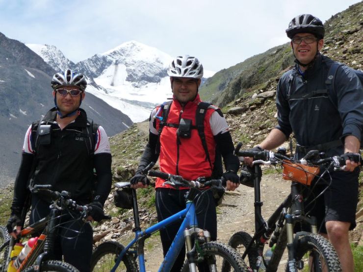 Wie auch am Vortag starteten wir erst um ca. 9:30 Uhr. Es ging Straße berghoch nach Vent. Das Stück konnten wir schnell absolvieren. In Vent machten an einem Supermarkt mit integriertem kleinen Sportgeschäft Stopp. Jeder kauft sich Verpflegung für den Tag. Marc und Matthias kaufen sich noch warme Handschuhe, weil sie in den ersten 2 Tagen oft an die Hände gefroren hatten. Wahrscheinlich ist es diesem Umstand zu verdanken, dass es heute an Tag nicht mehr regnete :-).