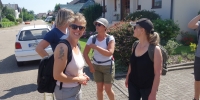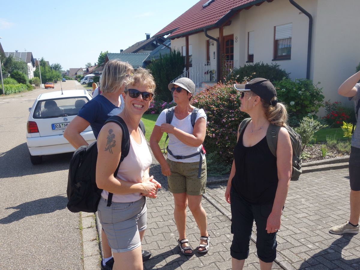 Dank vieler Bäume befanden sich die Tische + Bänke am Bolzplatz in Leiberstung im Schatten und wir konnten den Kaffee + Kuchen in Ruhe bei angenehmen Temperaturen genießen.