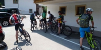 Zur Abfahrt hatte man 2 Möglichkeiten: Trail oder dieselbe Teer- Schotterpiste runter, die wir rauf fuhren. Wir teilten uns ca. 1/2 1/2. Ich versuchte zunächst den Trail zu fahren. Das war mir dann aber zu heftig, so dass ich den einfachen Weg runter fuhr zusammen mit Frank und Karl-Ludwig.